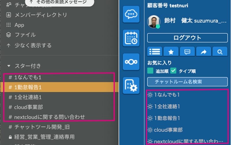 管理部担当者には相談ルームをまとめて表示