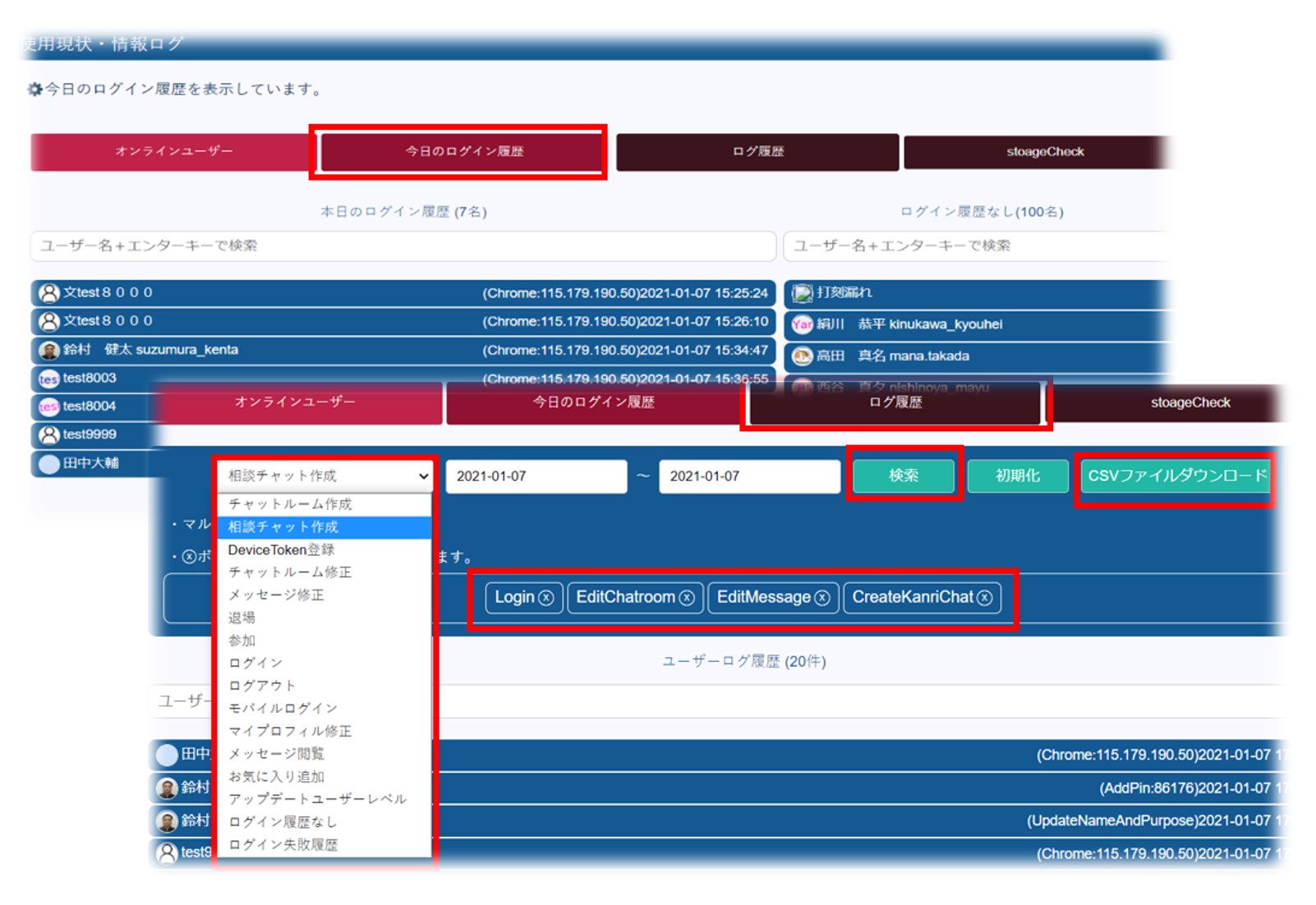 今日ログインしたユーザが誰なのか、何時にログインしたのかも分かります。