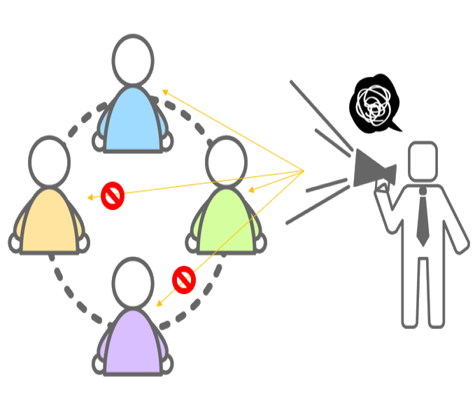 どこに聞けば良いか分からない話はとりあえず 「何でも相談ルーム」へ聞いてみよう! その他チャットルームには社員をサポートする 全てのメンバーが参加しています。 例えば、Aさんの「何でも相談ルーム」にはAさんを サポートする管理部担当者・部署リーダーとAさんのみ 入っているので、他のメンバーに言えずに相談できます。 管理部担当者・部署リーダーのチャットには各社員の 「何でも相談ルーム」が表示されます。 |